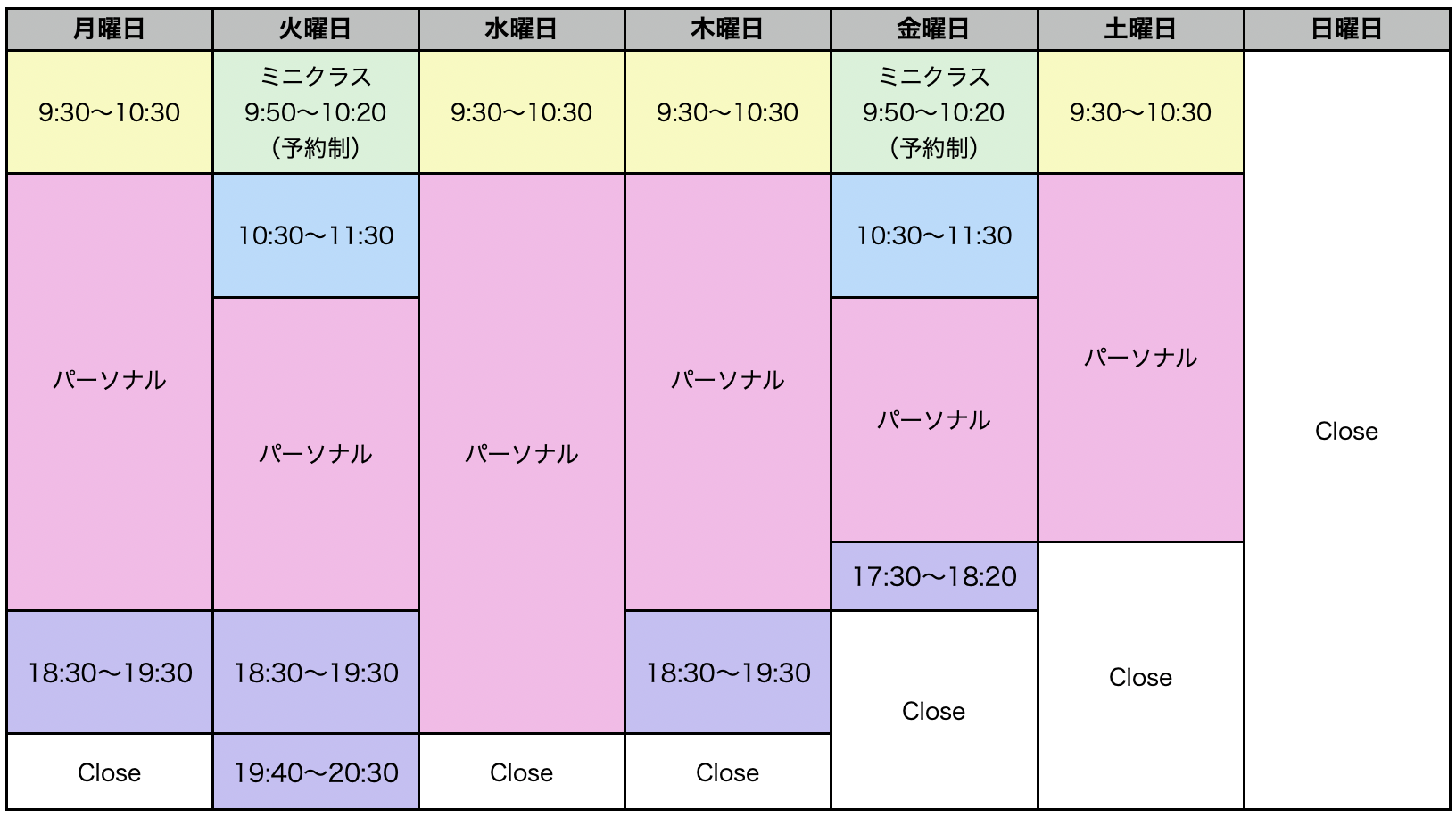 はじめやすいミニクラス・パーソナルクラスもあり!